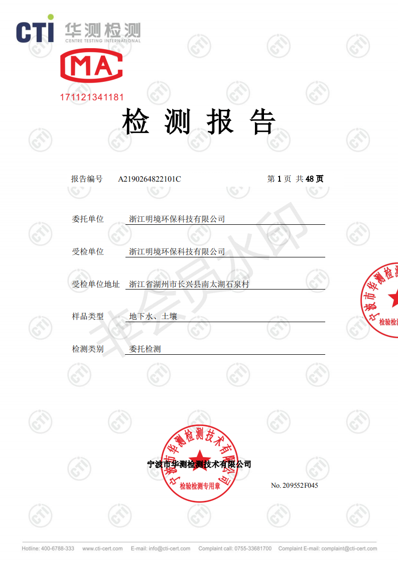 浙江明境環保科技有限公司2019年度土壤及地下水自行監測信息公開