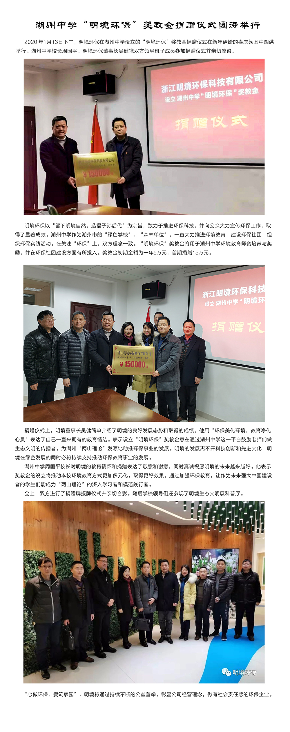 湖州中學“明境環保”獎教金捐贈儀式圓滿舉行