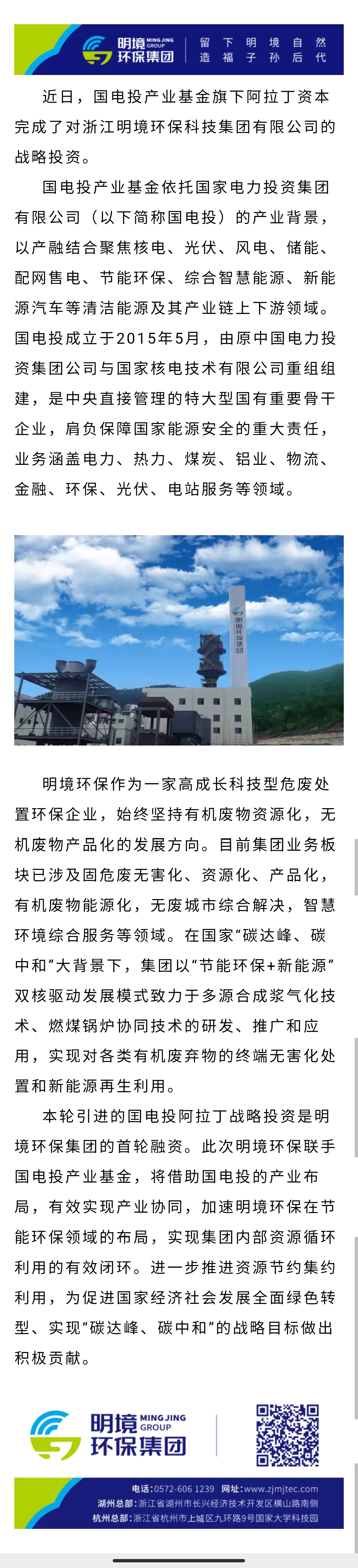 國電投產業基金聯合阿拉丁資本投資明境環保集團