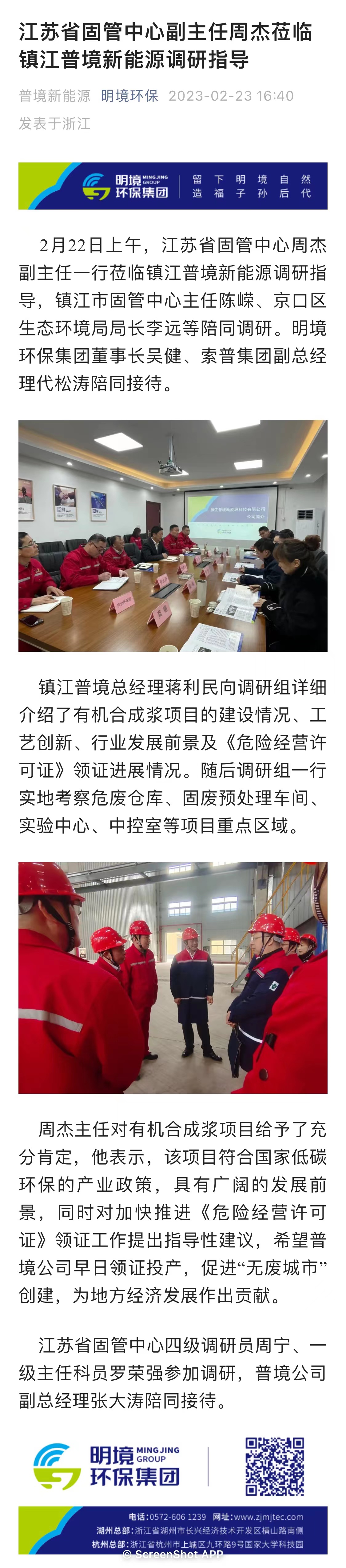江蘇省固管中心副主任周杰蒞臨普境新能源指導調研