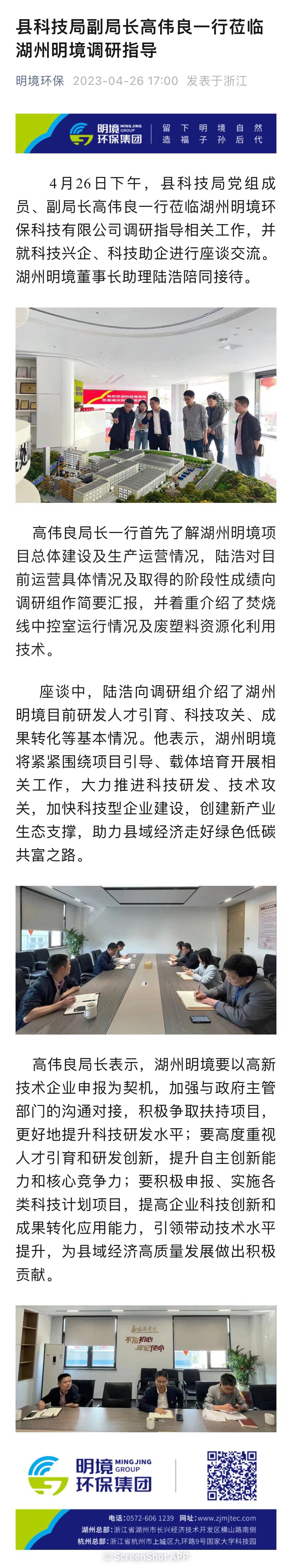 縣科技局副局長高偉良一行蒞臨湖州明境調研指導